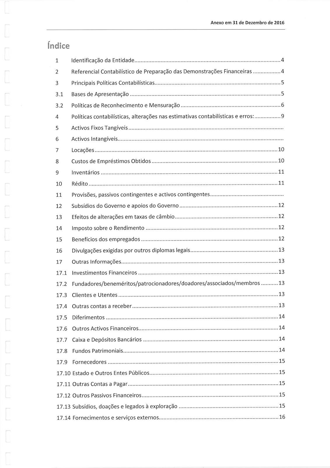 Relativamente às Contas, é nossa opinião que as mesmas representam de forma adequada a situação patrimonial e financeira da Instituição à data de 31 de Dezembro de 2016.